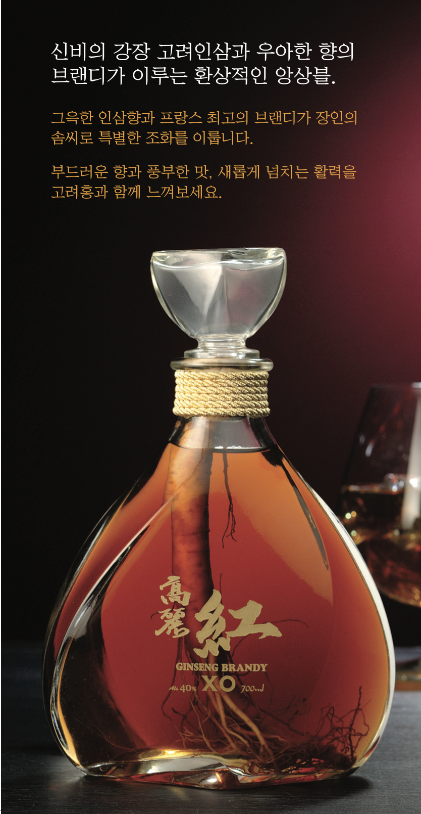 The brilliant ensemble of invigorating Korean Ginseng and gorgeous aroma of Brandy. Fascinating bouquet of Ginseng and high quality Brandy have been specifically harmonized and blended by our master blender.